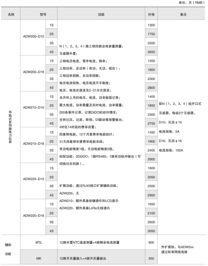 ADW2xx系列導(dǎo)軌式多回路電力儀表方便用戶進(jìn)行用電監(jiān)測(cè)、集抄和管理??伸`活安裝于配電箱內(nèi),實(shí)現(xiàn)對(duì)不同區(qū)域和不同負(fù)荷的分項(xiàng)電能計(jì)量,統(tǒng)計(jì)和分析。訂貨范例: