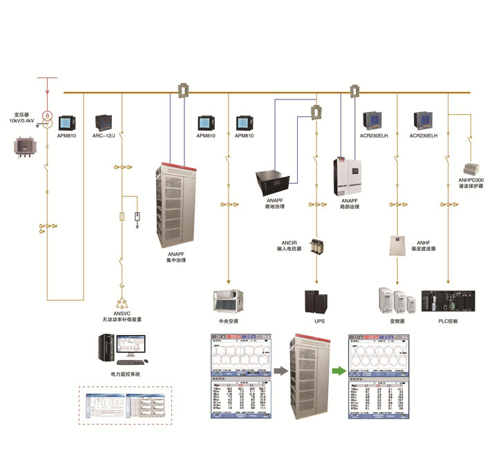 電能質(zhì)量分析與治理系統(tǒng)主要是研究消除供配電系統(tǒng)中的無(wú)功補(bǔ)償和諧波治理問(wèn)題,主要的產(chǎn)品有有源電力濾波器、低壓無(wú)功功率補(bǔ)償裝置、靜止無(wú)功發(fā)生器、混合動(dòng)態(tài)濾波補(bǔ)償裝置、混合動(dòng)態(tài)消諧補(bǔ)償裝置、智慧型動(dòng)態(tài)無(wú)功補(bǔ)償裝置、諧波保護(hù)器等,適用于新建、改建、擴(kuò)建和技改項(xiàng)目中工業(yè)與民用及公共建筑內(nèi)電氣設(shè)備的無(wú)功補(bǔ)償、諧波抑制及綜合治理等,可根據(jù)不同行業(yè)類(lèi)型和負(fù)載類(lèi)型的電能質(zhì)量問(wèn)題提供合適的設(shè)計(jì)解決方案,以達(dá)到改善供電質(zhì)量和確保電力系統(tǒng)安全經(jīng)濟(jì)運(yùn)行的目的。