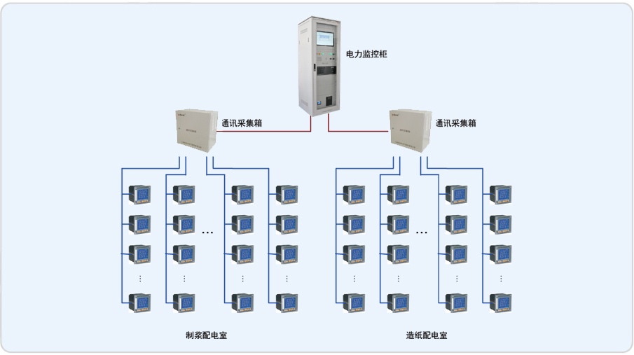 淄博歐木特種紙業(yè)有限公司是山東齊峰特種紙業(yè)股份有限公司的全資子公司。2003年企業(yè)被國家科技部命名為國家新材料產(chǎn)業(yè)化基地骨干企業(yè),2004 年進(jìn)入全國私營企業(yè)納稅百強(qiáng)排行榜,公司擁有山東省企業(yè)技術(shù)開發(fā)中心、山東省高檔裝飾原紙工程技術(shù)中心和院士工作站,由中國造紙院士陳克復(fù)教授擔(dān)任專家。歐木特種紙業(yè)二期電能管理系統(tǒng)現(xiàn)場為新建的15#車間,2個低壓配電室:制漿配電室和造紙配電室,配電室內(nèi)采用安科瑞ACR系列電能管理儀表采集各回路的電流、電壓、電能等電參量,然后通過中間層采集設(shè)備經(jīng)局域網(wǎng)傳到監(jiān)控室計算機(jī)上,實現(xiàn)遙測、遙信功能。