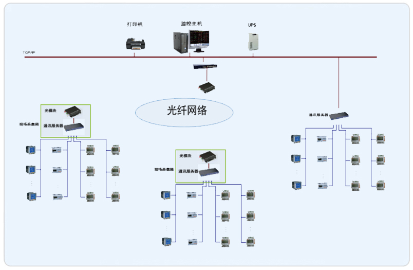系統(tǒng)采用Acrel-3000型電能管理系統(tǒng),整個系統(tǒng)采用網(wǎng)絡(luò)分布式結(jié)構(gòu),監(jiān)控主機(jī)位于主樓監(jiān)控中心,其他兩棟輔樓采用采集箱進(jìn)行數(shù)據(jù)的采集,所有配電回路均配備安科瑞電力儀表PZ系列、DTSY1352和DDSY1352系列。該項目實現(xiàn)了歐蓓沙中華美食城的配電管理及。所有監(jiān)控設(shè)備均通過屏蔽雙絞線至各自采集箱的通訊采集器,再通過光電轉(zhuǎn)換器經(jīng)過光纖將數(shù)據(jù)傳輸至監(jiān)控中心,從而實現(xiàn)遠(yuǎn)程監(jiān)控和預(yù)付費管理。