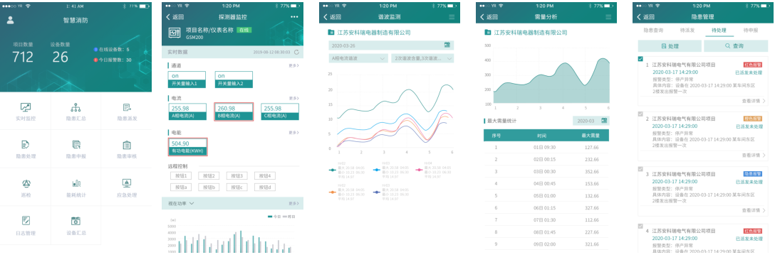 APP支持Android、iOS操作系統(tǒng),方便用戶查看電氣火災(zāi)、防排煙、消防水、消防設(shè)備電源、防火門、消防設(shè)備管理、視頻 監(jiān)控、火災(zāi)報警等子系統(tǒng)的實(shí)時監(jiān)控數(shù)據(jù)、報警信息、能耗統(tǒng)計等。